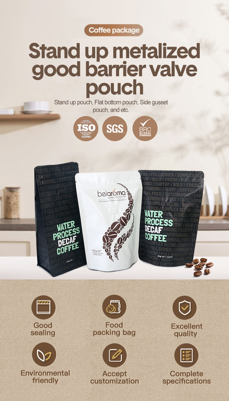 Coffee Stand Up bolsa de aluminio con válvula de cierre cremallera Especificaciones