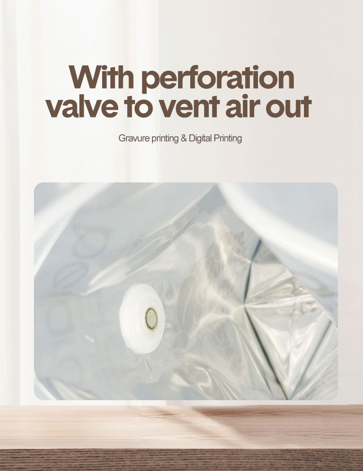 Esta es una bolsa de papel de aluminio para café con una válvula de cremallera. Es una solución de envasado de alta calidad diseñada específicamente para productos de café. El material de lámina de aluminio proporciona excelentes propiedades de barrera, protegiendo eficazmente el café del oxígeno, la humedad y la luz, lo que ayuda a preservar su frescura, aroma y sabor durante un período más largo de tiempo. El diseño stand-up hace que sea conveniente almacenar y mostrar en estantes. La válvula de cierre con cremallera permite abrir y volver a sellar fácilmente, asegurando que el café permanezca fresco incluso después de abrir el paquete. Este tipo de envasado es ampliamente utilizado para café molido, granos de café y otros productos relacionados con el café, y también es adecuado para otros artículos alimenticios que requieren protección hermética.