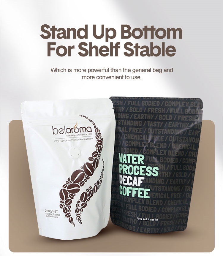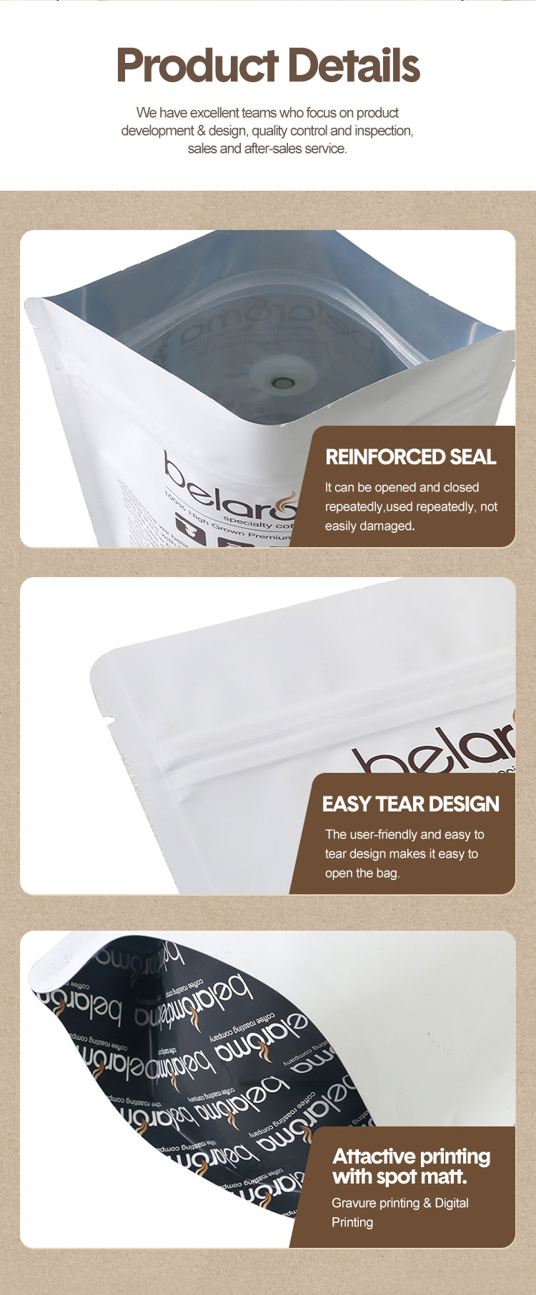 Coffee Stand Up bolsa de aluminio con válvula de cierre cremallera Detalles del producto